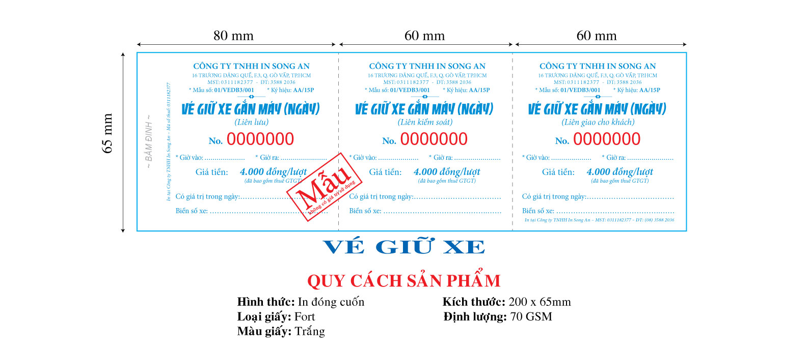 Kích thước vé xe mà Song An sản xuất phục vụ các khách hàng nhỏ nhưng giá trị của vé xe vô cùng lớn đảm bảo cho các không gian sử dụng vé xe luôn kiểm soát được số lượng xe một cách tốt nhất, an toàn và rất tiện dụng.